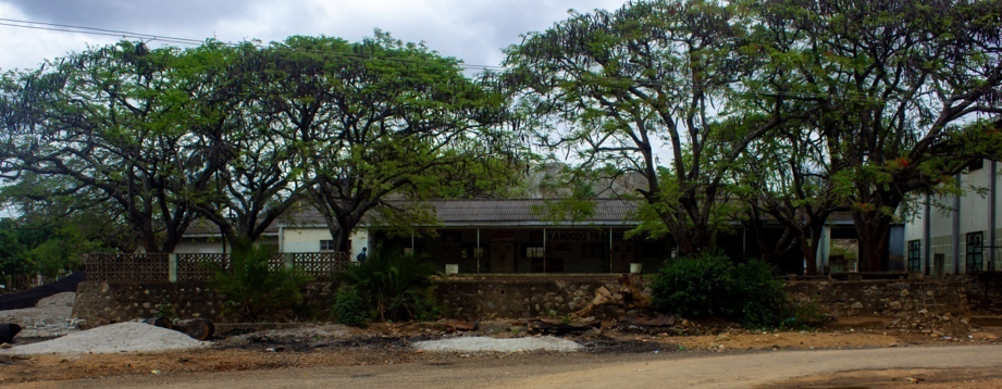 The kiosk is constructed of cemwash cement block bricks under a trafford asbestos roof which is supported by wooden timber roof trusses. The kiosk has a serving hatchet, granolithic floors, steel window frames, wooden door and basic light fittings.