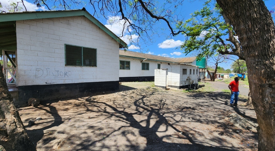 Building 97.54 sqm, Tuck shop 17.40 sqm. The building is constructed of a cemwash cement block brick plastered brick under a combination of asbestos roof which is supported by wooden timber roof trusses. There are fascia boards on some sections, gutters and down pipes on some sections, bison board ceilings, steel burglar barred window frames, combination of wooden and steel door frames, granolithic floors, combination of fluorescent and basic light fittings and 13 and 15 ampere wall plugs. The building provides butchery section with a concrete counter, scullery area with a double stainless sink and a geyser, cold room and a storeroom. There is an extension which provides a tuck-shop with a serving hatchet and back storeroom.